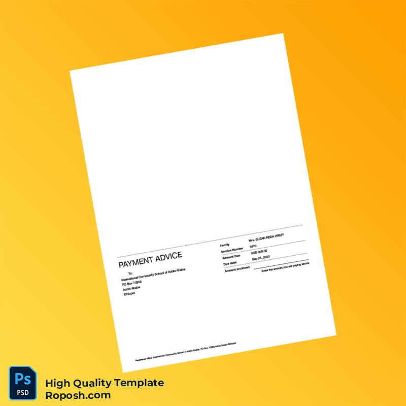 Ethiopia International Community School of Addis Ababa Invoice Template – Editable Word and PDF Formats