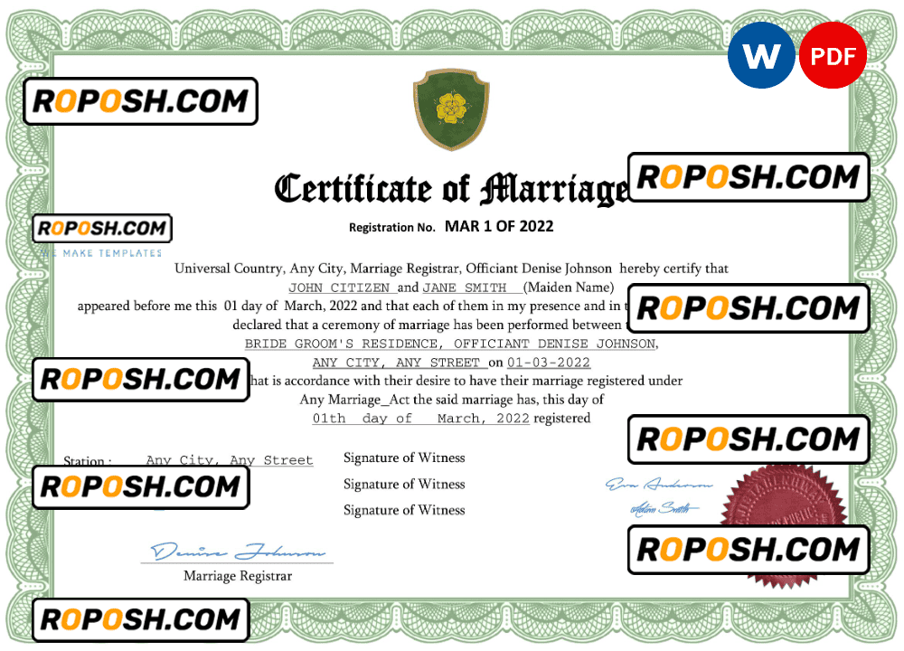 Choose roposh and appreciate the pleasure of a beautiful, authentic-looking Marriage Certificate you can print at home or at your local print shop for a polished presentation.