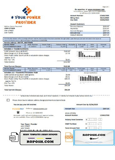 Download our fully editable First Fine Universal Multipurpose Utility Bill Word Template. This high-quality, customizable template is layer-based and includes all necessary fonts. Easily modify the template to include any name, address, license number, ID number, birth date, height, weight, expiration date, and more. Perfect for creating a editable utility bill for proof of address. Ensure your documents are up-to-date and avoid account suspensions with our premium template.