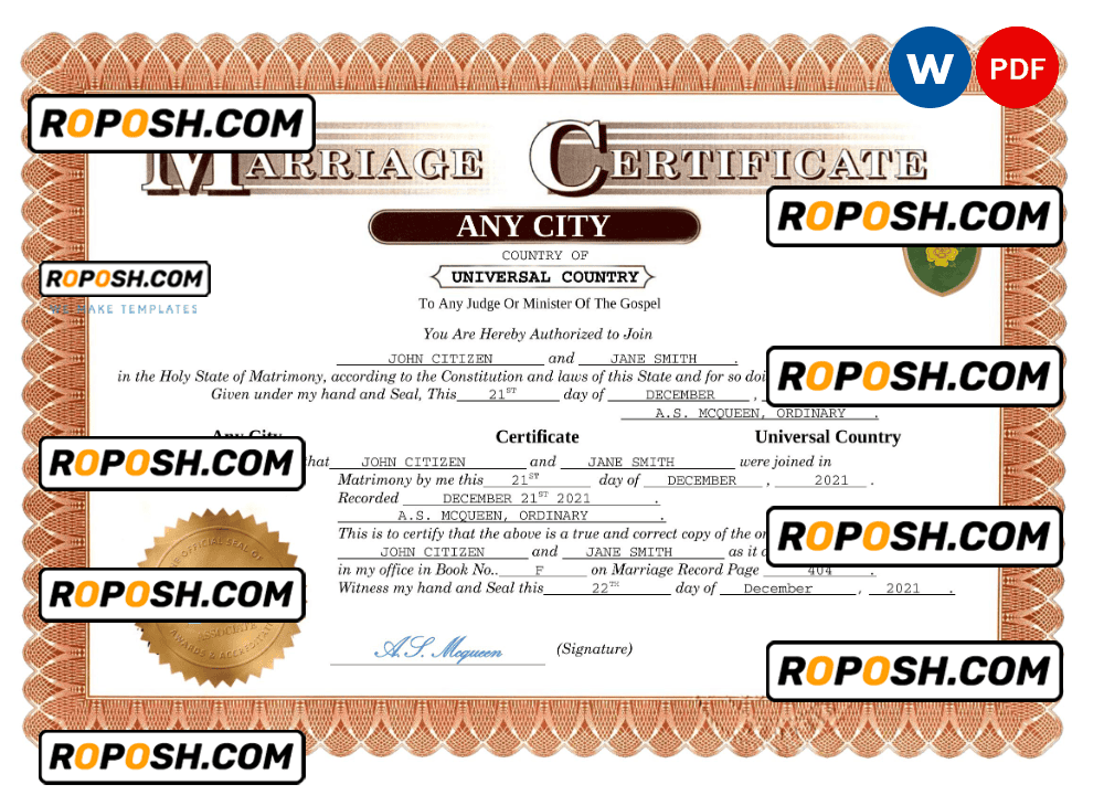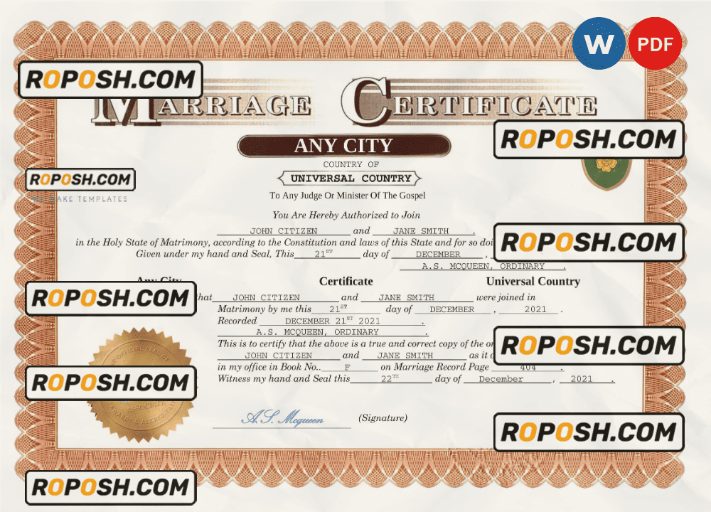 Choose roposh and appreciate the pleasure of a beautiful, authentic-looking Marriage Certificate you can print at home or at your local print shop for a polished presentation.