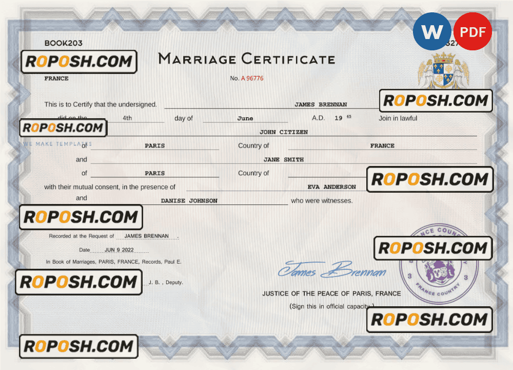 – Join our growing list of satisfied customers today by getting your hands on our blank France marriage paper certificates.