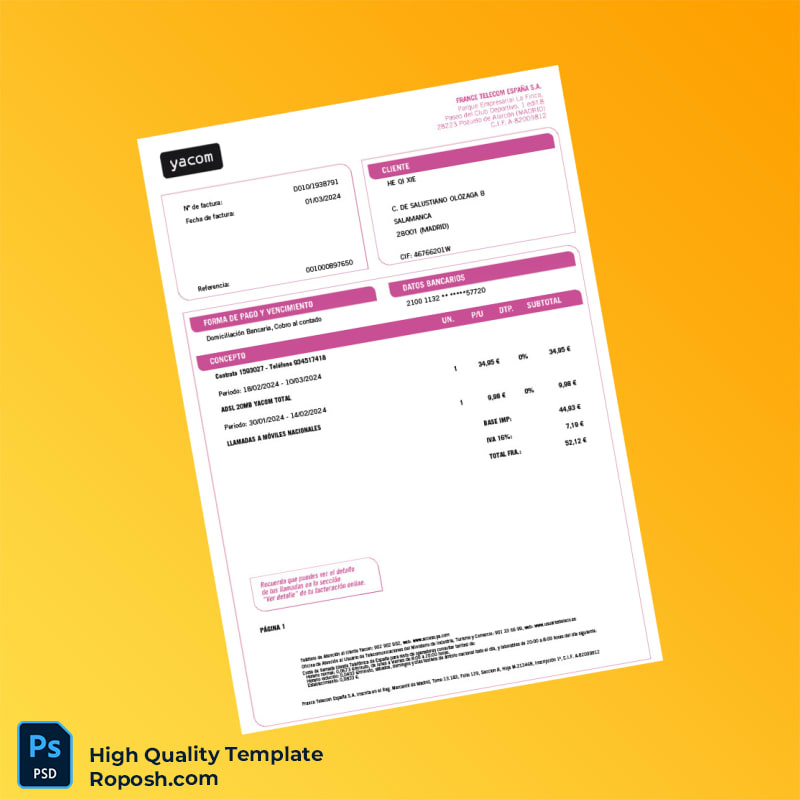 France Yacom Telecom Editable Internet Bill Template