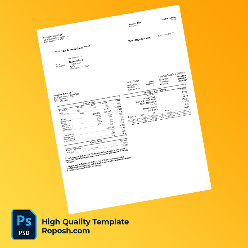 US Blue Sky Transportation LLC earning statement word and pdf template