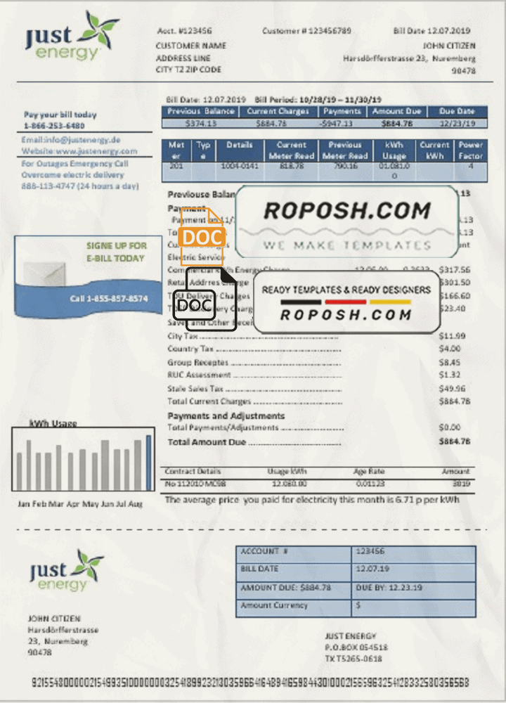 Germany Just Energy Utility Bill Template – Editable Word and PDF