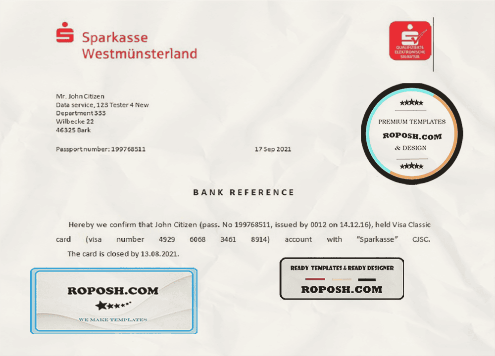 Germany Sparkasse bank account closure reference letter template in Word and PDF format