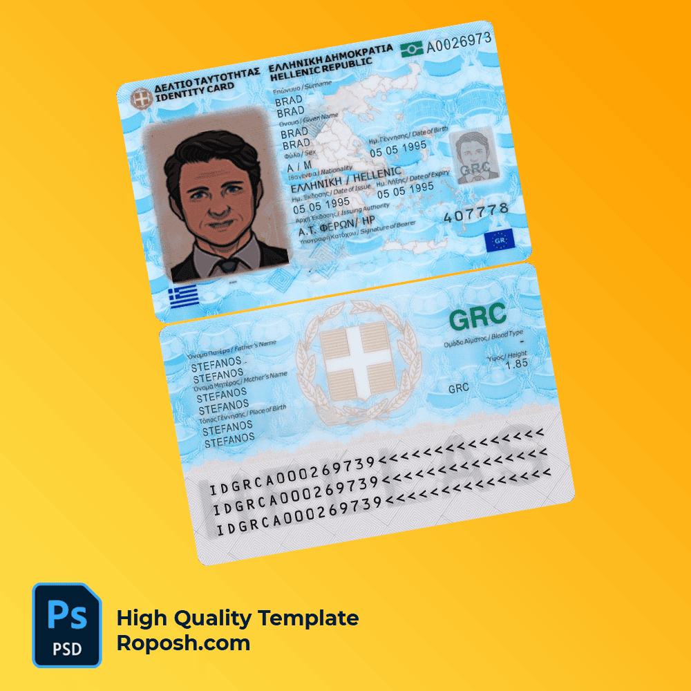 - Select Your Template: Visit Roposh.com and choose the Greece ID Card PSD template.