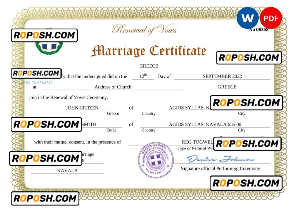 – Join our growing list of satisfied customers today by getting your hands on our blank Greece marriage paper certificates.