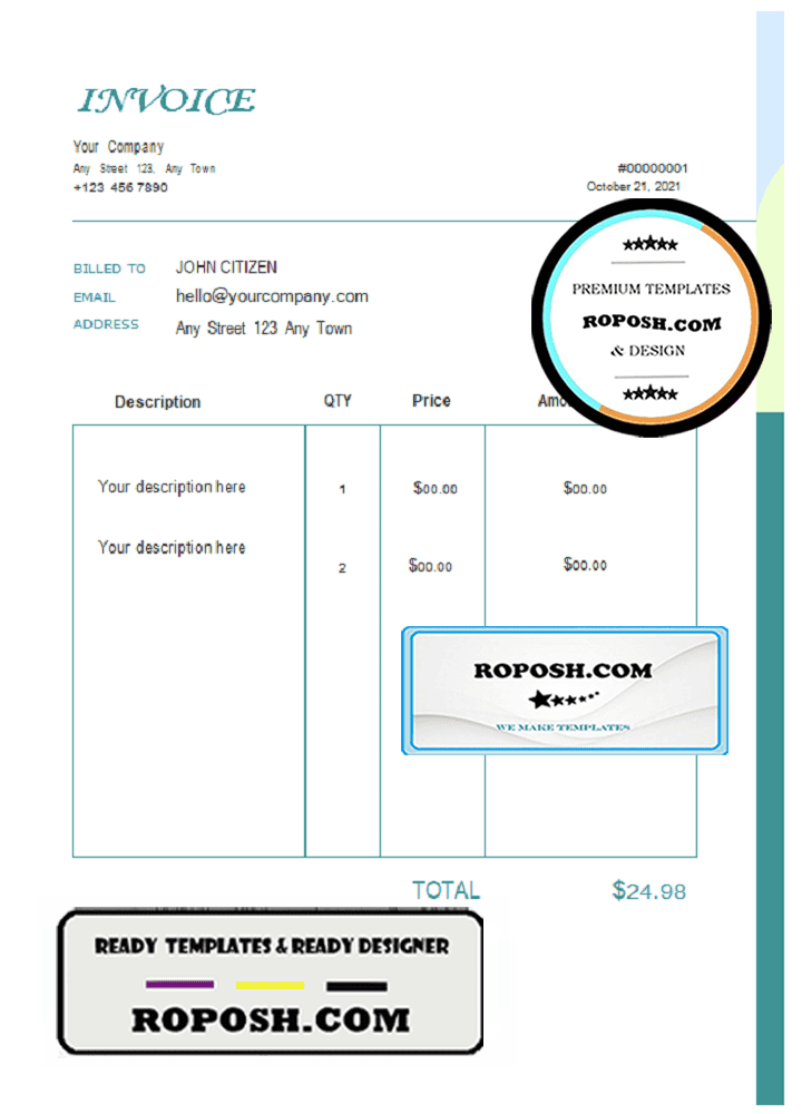 Featuring a wide range of templates from all over the world, the green energic universal multipurpose invoice Word Template is fully customizable, and included fonts. Edit all relevant details, such as name, photo, signature, barcodes, and holograms, to create a realistic, high-quality editable invoice template.