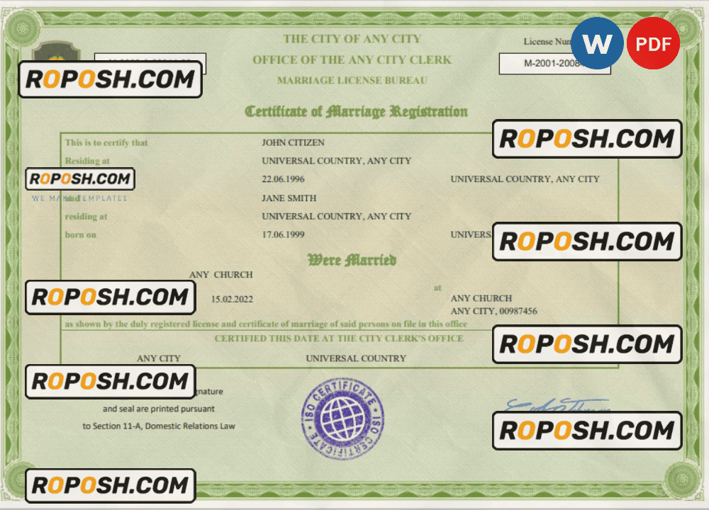 Choose roposh and appreciate the pleasure of a beautiful, authentic-looking Marriage Certificate you can print at home or at your local print shop for a polished presentation.