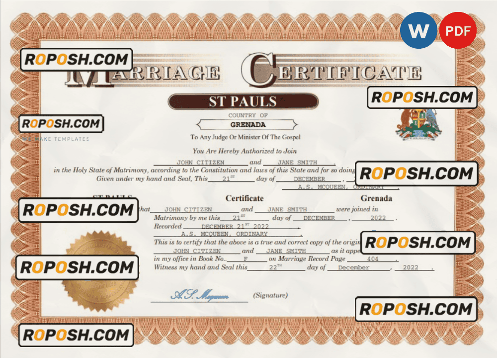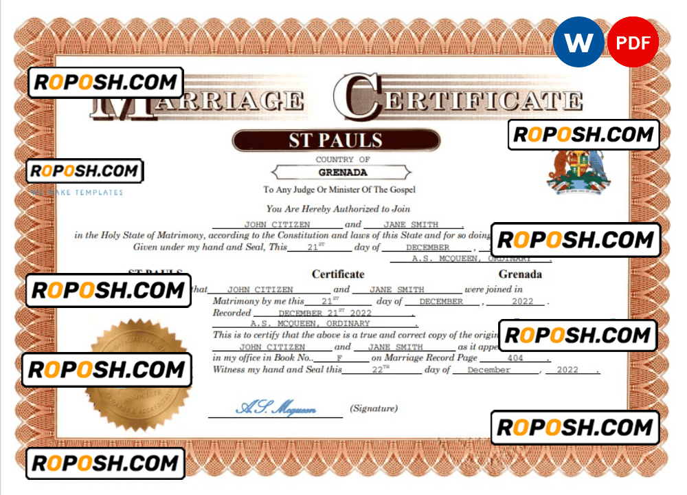 Be the first to review “Grenada marriage certificate Word and PDF template, fully editable”