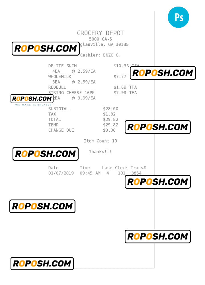 Features Editable GROCERY DEPOT Receipt PSD Template :
