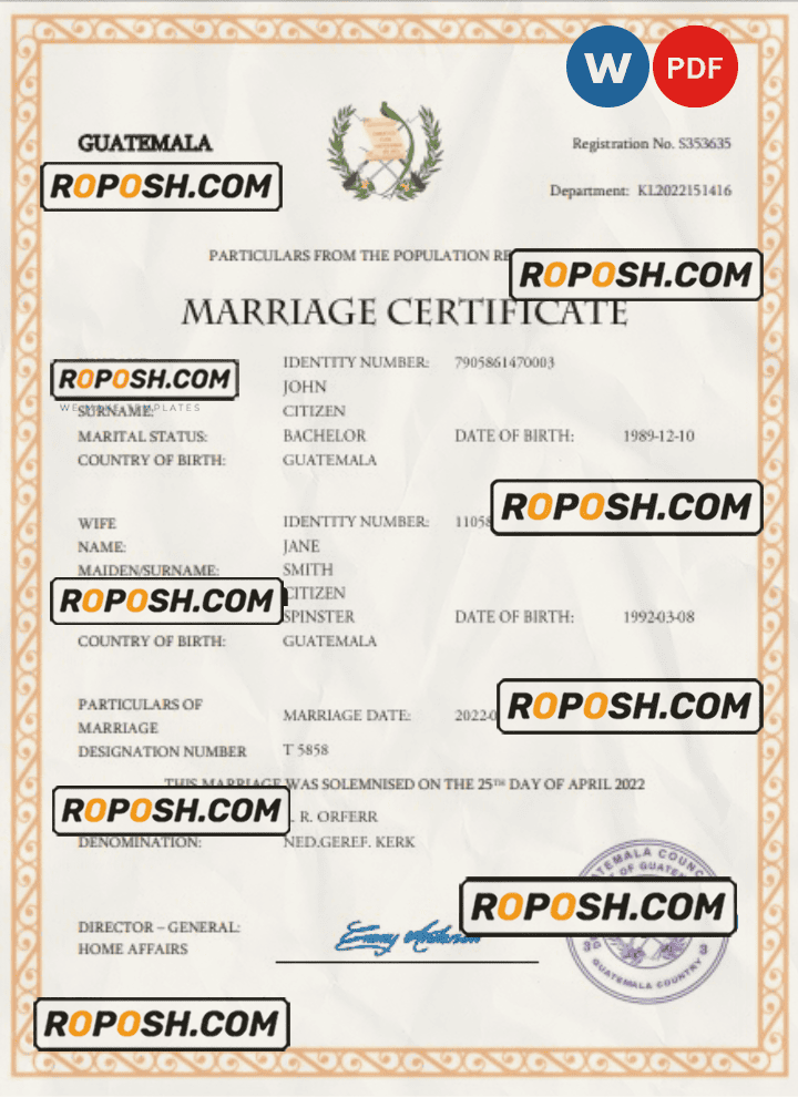 Be the first to review “Guatemala marriage certificate Word and PDF template, completely editable”