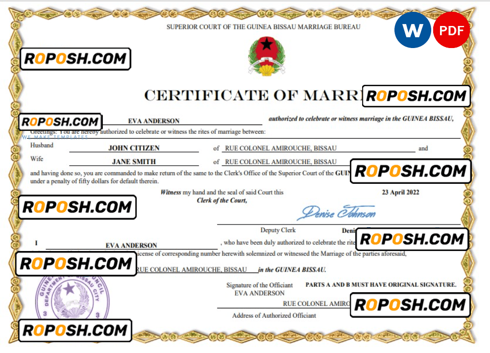 – Join our growing list of satisfied customers today by getting your hands on our blank Guinea Bissau marriage paper certificates.