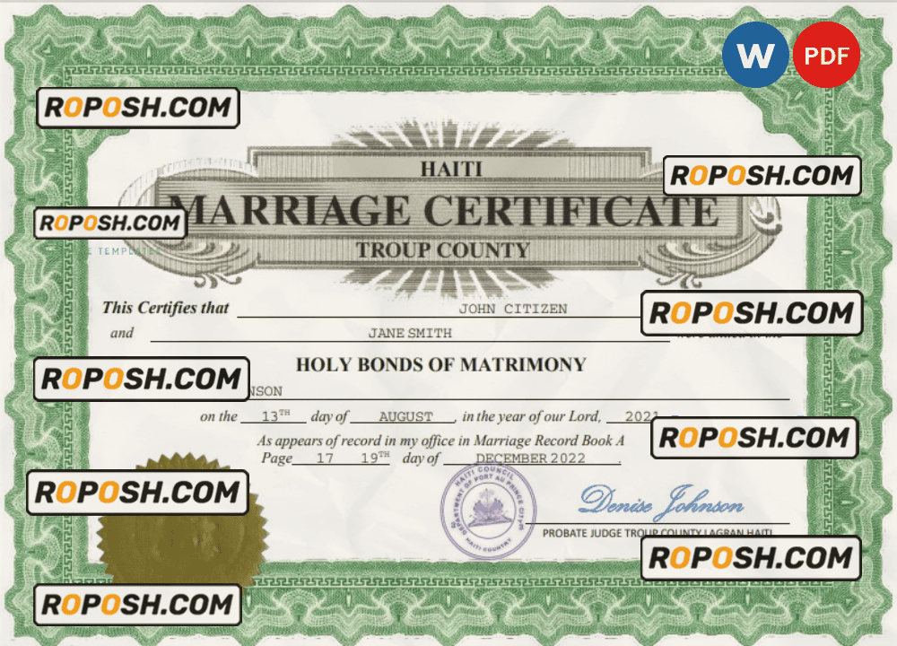Get your printable Haiti marriage certificate templates now and join our growing list of satisfied customers!