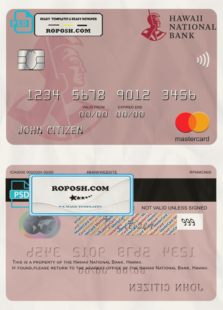 Hawaii National Bank mastercard PSD Template