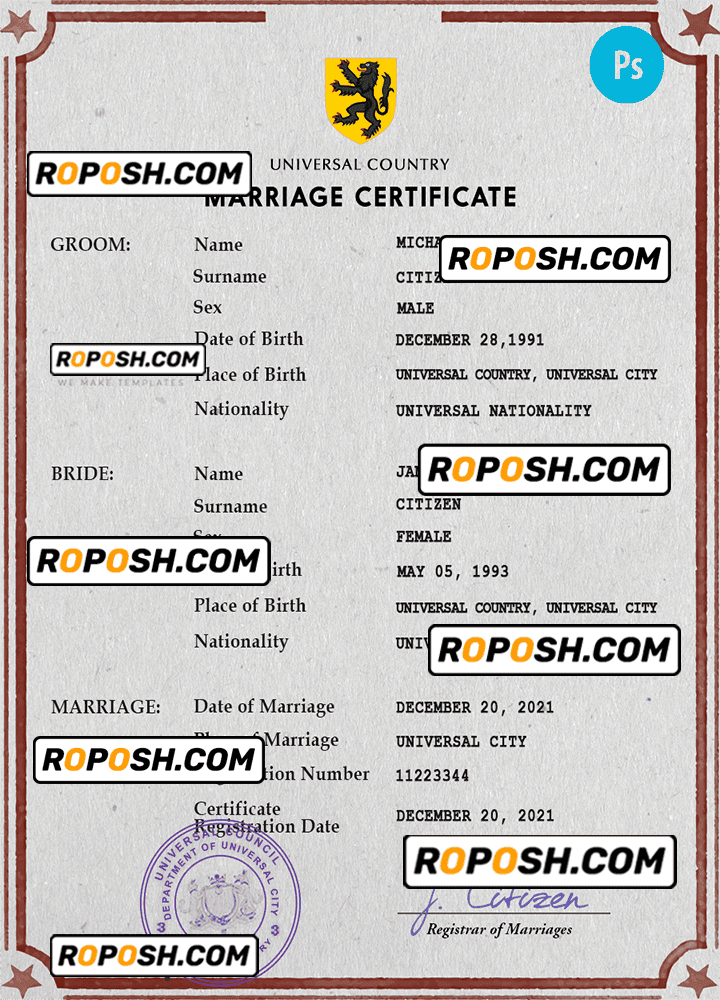 Choose roposh and appreciate the pleasure of a beautiful, authentic-looking Marriage Certificate you can print at home or at your local print shop for a polished presentation.