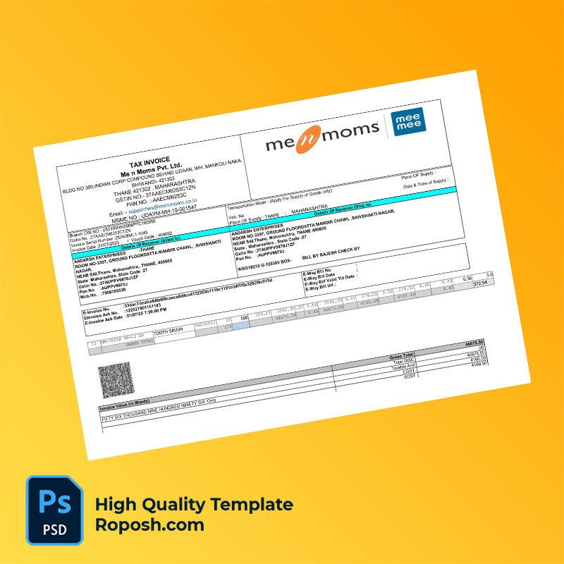 India Aadarsh Editable Tax Invoice Template in Word and PDF formats