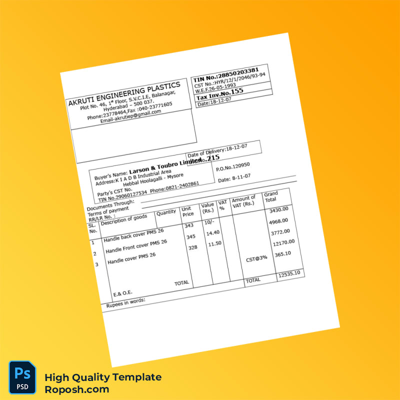 India Akruti Engineering Plastics Tax Invoice Template in Word and PDF Formats