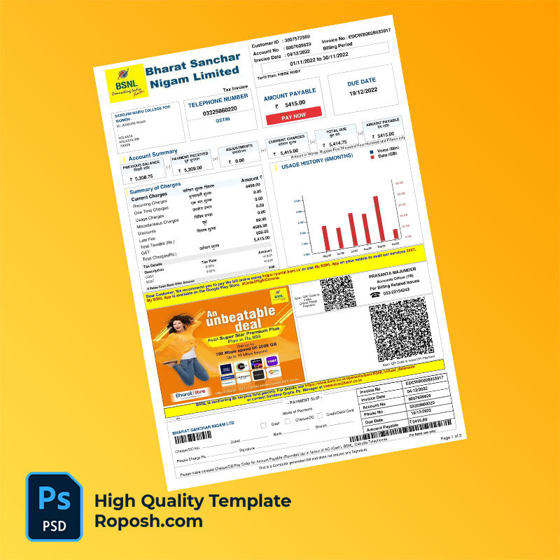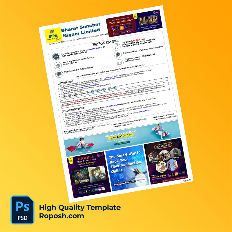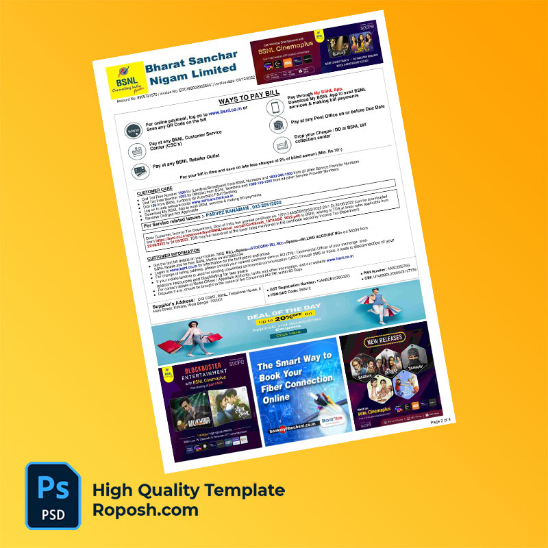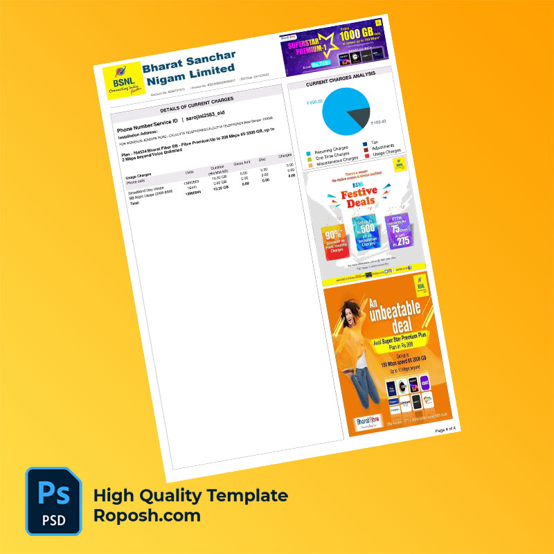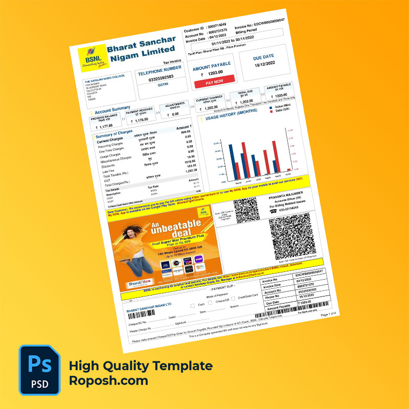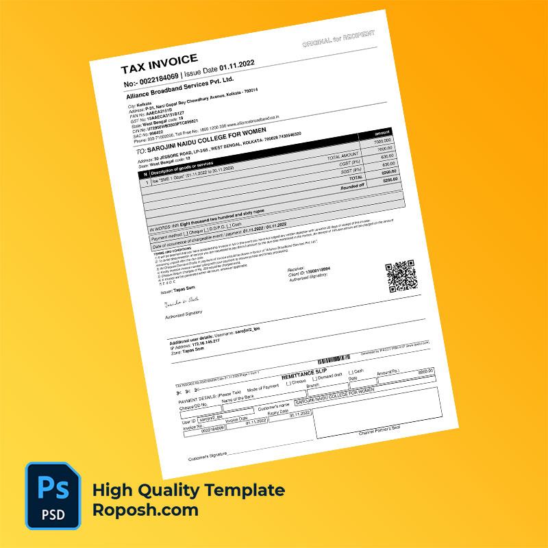 India Alliance Broadband Services Pvt. Ltd. Editable Tax Invoice Template in Word and PDF formats