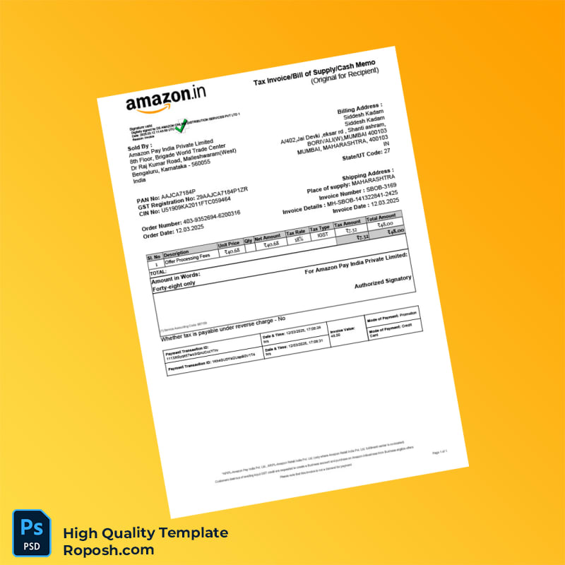 Simplify your billing with our India Amazon Pay India Private Limited Tax Invoice Template in Word and PDF formats. Save time and ensure compliance today!