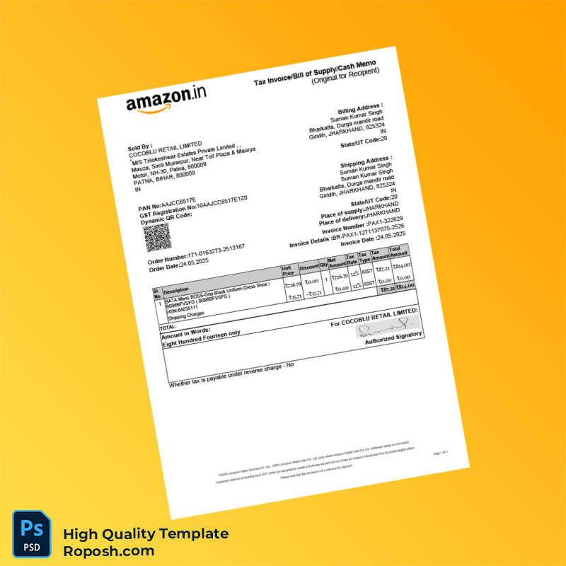 India Amazon Seller Services Private Limited COCOBLU RETAIL LIMITED Invoice Template in Word and PDF Formats