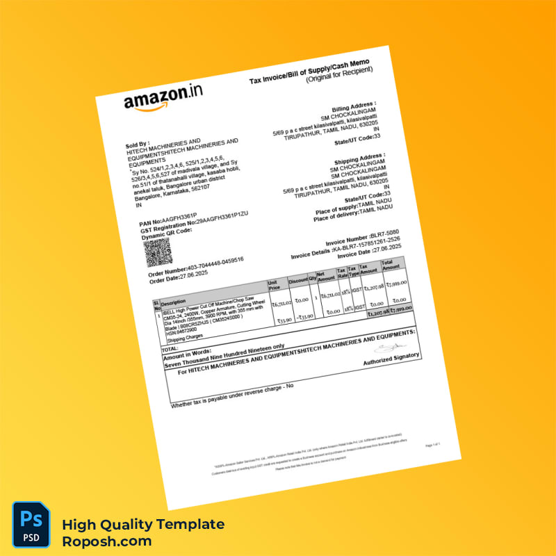 The ideal user of this editable invoice template is an Amazon seller, manufacturing company, or machinery equipment supplier in India who requires a quick, reliable way to create and customize invoices. Whether your original invoice was lost, expired, or you simply need a streamlined method to generate multiple bills across different transactions, this product addresses those challenges head-on. It eliminates the frustration of manual formatting errors and compliance delays.