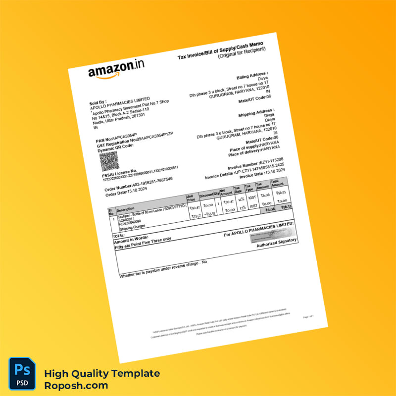 Every detail in the India Apollo Pharmacies Limited Invoice Template is designed for ease and precision: