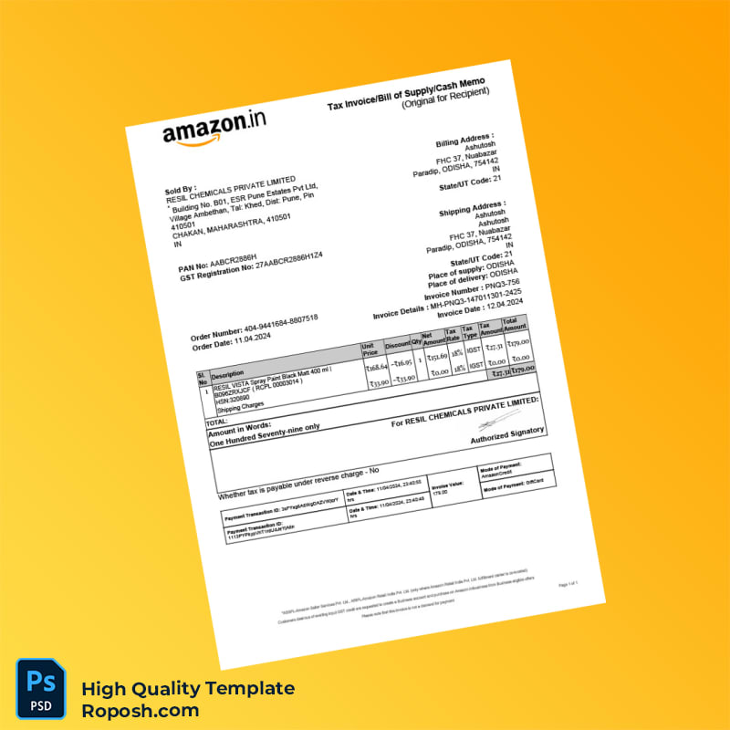 India Appario Retail Private Ltd Editable Invoice Template in Word and PDF Formats