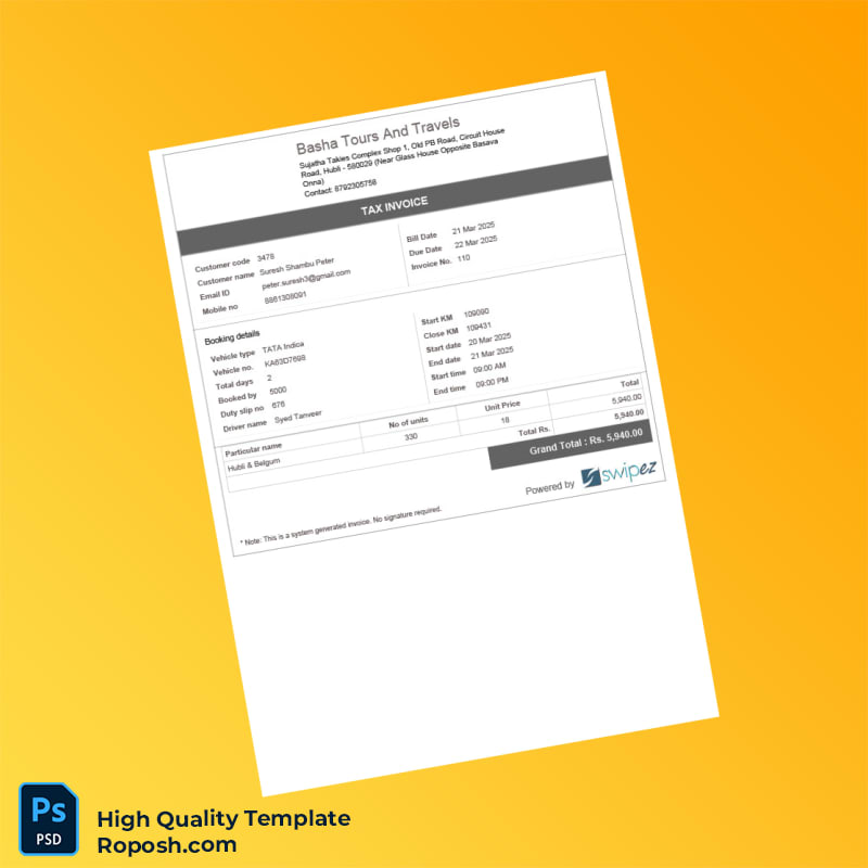 India Basha Tours and Travels Tax Invoice Template: Streamlined Billing in Word and PDF