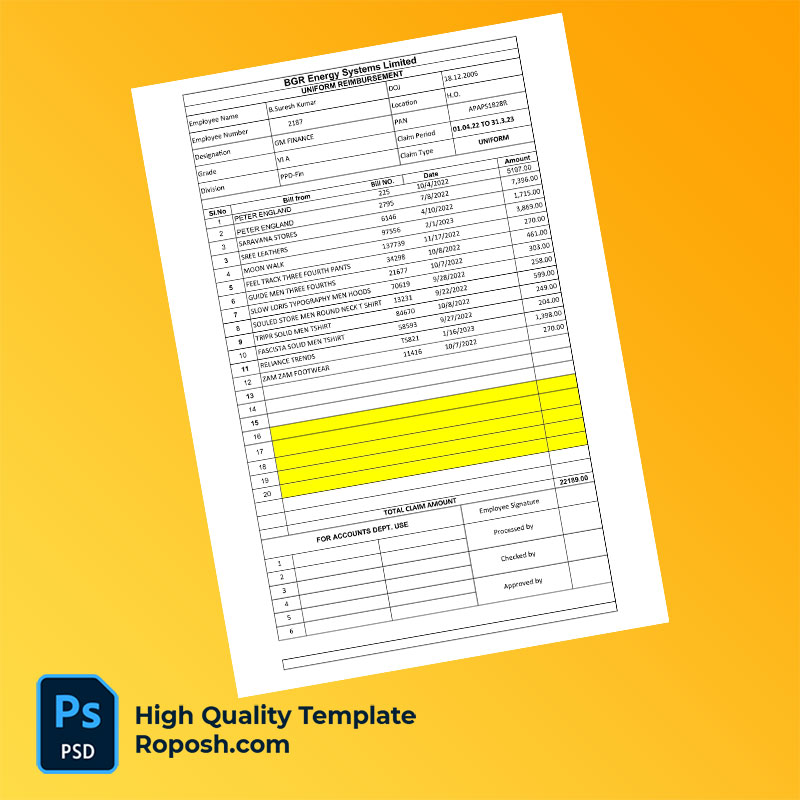 India BGR Energy Systems Limited Editable Reimbursement Claim Form Template in Word and PDF formats