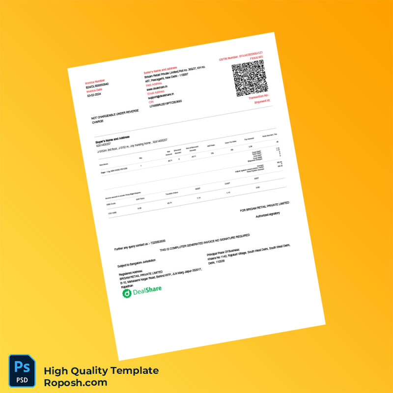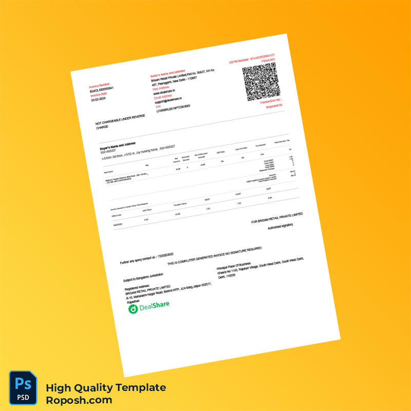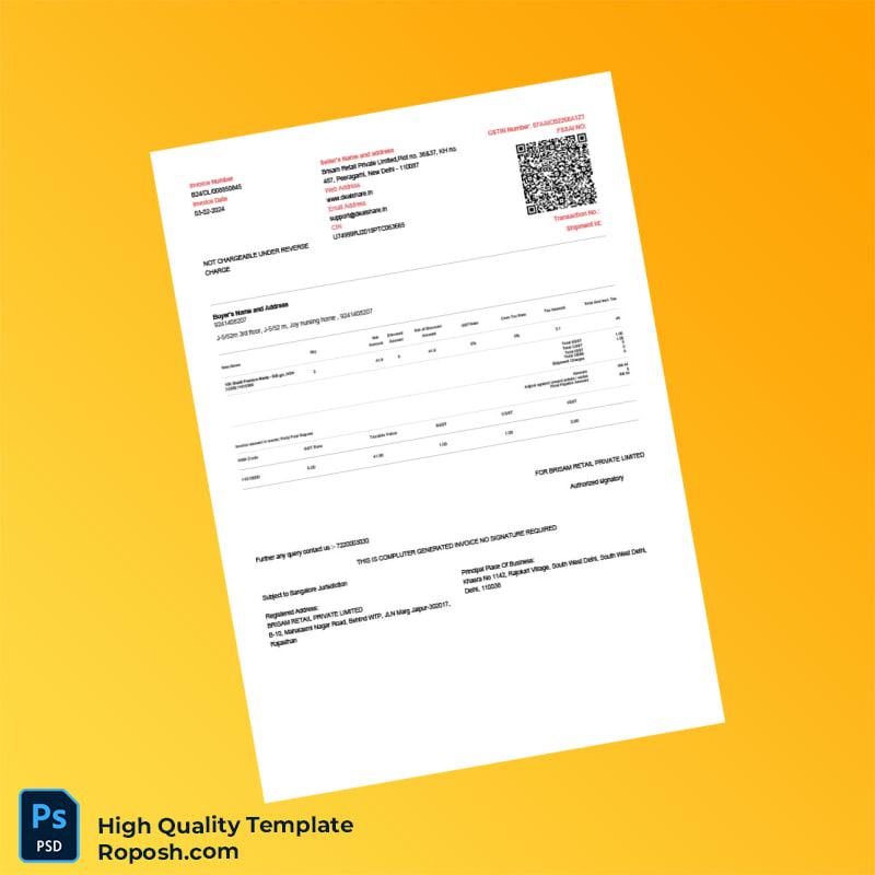 Embrace professionalism and efficiency by choosing the India Brisam Retail Private Limited Invoice Template. Its user-friendly design, format flexibility, and instant availability make it the ideal choice to streamline your invoicing process. Download your editable printable invoice template now and experience hassle-free billing that keeps your business running smoothly.