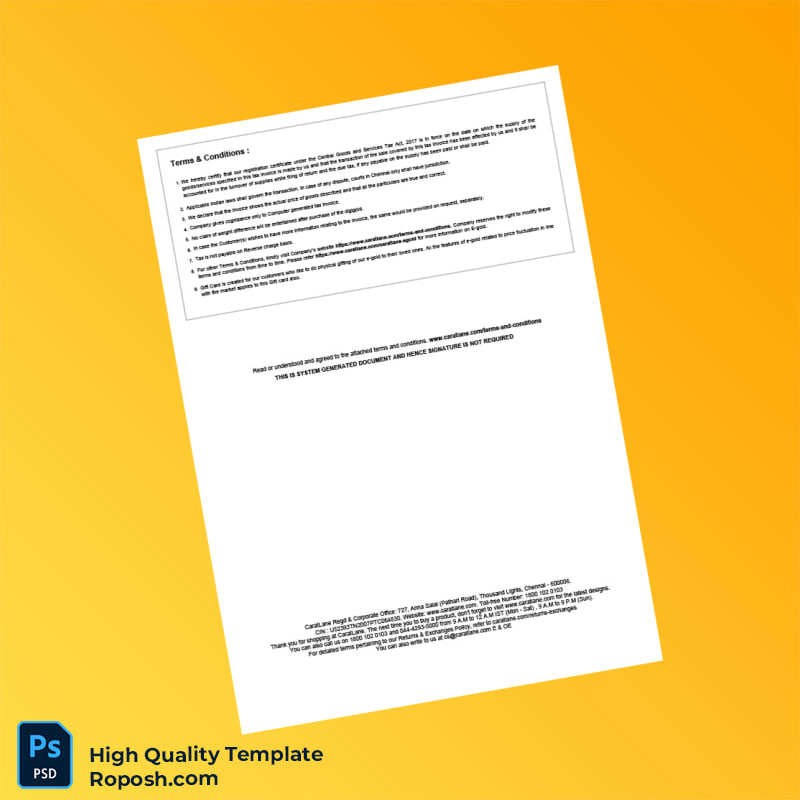 Streamline your billing process with the India CaratLane Trading Private Ltd Tax Invoice Template, a fully editable invoice template available in both Word and PDF formats. Tailored for professionals and businesses requiring an easy-to-customize invoice ready for immediate use, this template offers flexibility, clarity, and compliance in one package.