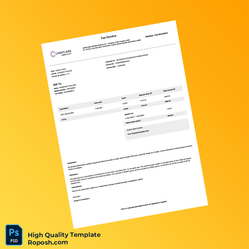 India CaratLane Trading Private Ltd Tax Invoice Template: Professional Editable Invoice Solution