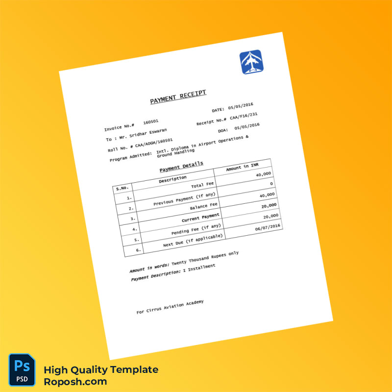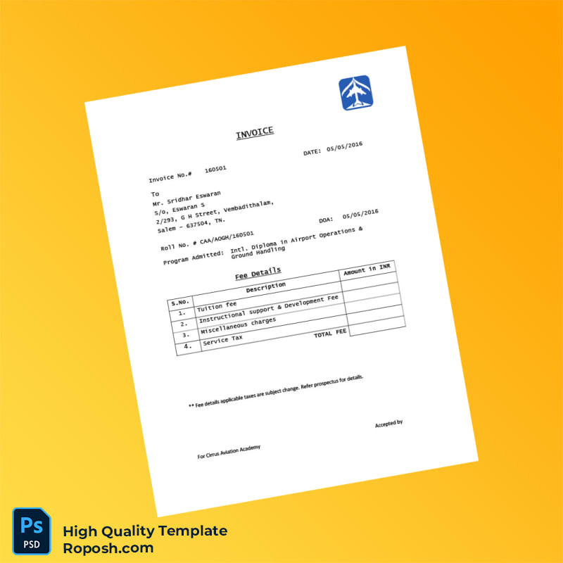 India Cirrus Aviation Academy Invoice Template: Professional and Editable in Word and PDF