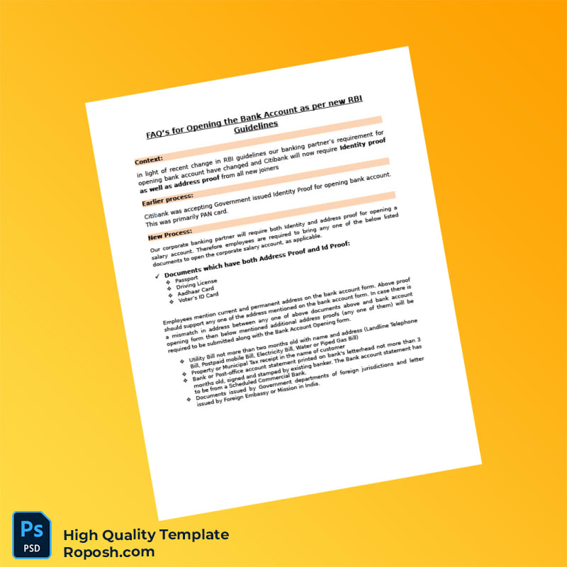 The India Citibank Editable Bank FAQs Template in Word and PDF formats is your definitive answer when you need a reliable utility bill proof of address template. Designed for professionals who require swift, editable documents, this template enables you to maintain a seamless workflow without the hassles of traditional paperwork.