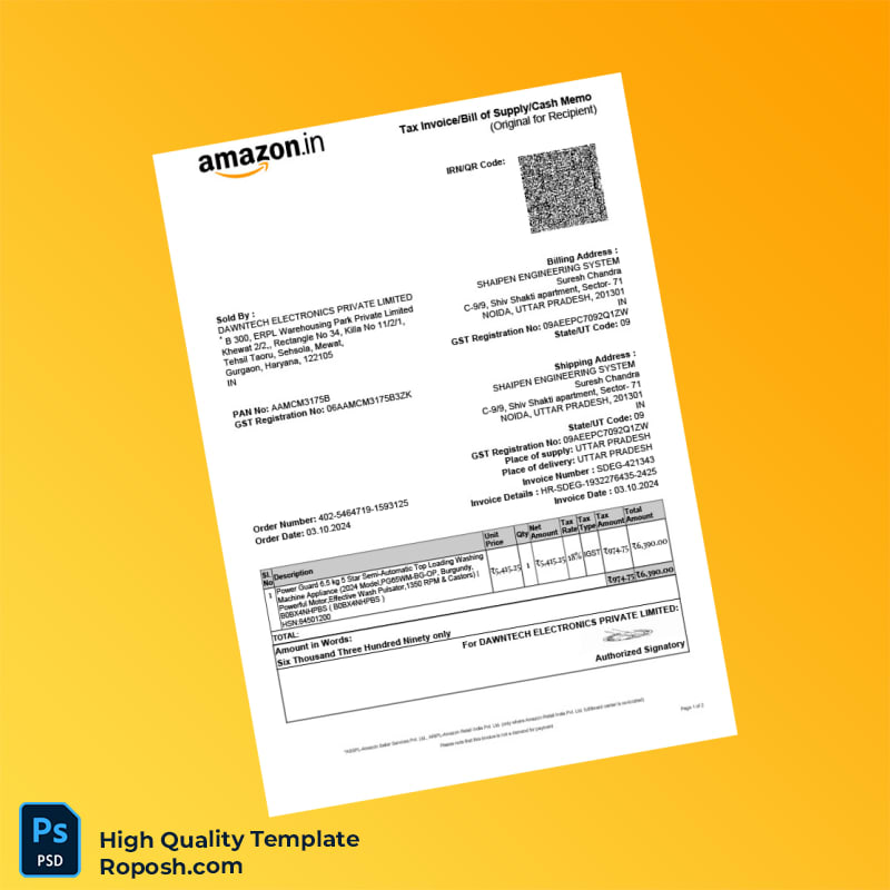 The India DAW NTECH ELECTRONICS PRIVATE LIMITED Tax Invoice Template is a professionally designed, editable invoice template available in both Word and PDF formats. Crafted to meet corporate and legal invoicing standards, it simplifies your billing process while enhancing business documentation. This template ensures accuracy, flexibility, and quick customization for businesses of all sizes.