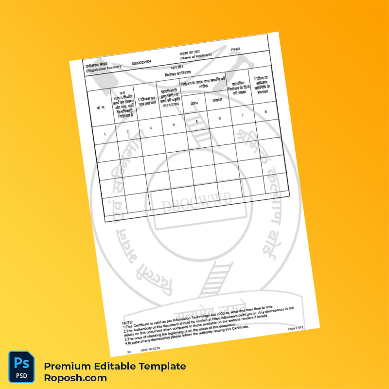 Streamline Your Business Registration with the India Delhi Building and Other Construction Workers Welfare Board Registration Certificate Editable Word & PDF Template