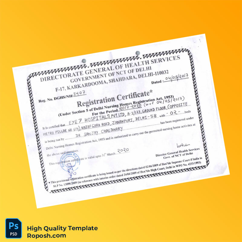 India Directorate General of Health Services Registration Certificate Template in Word and PDF formats