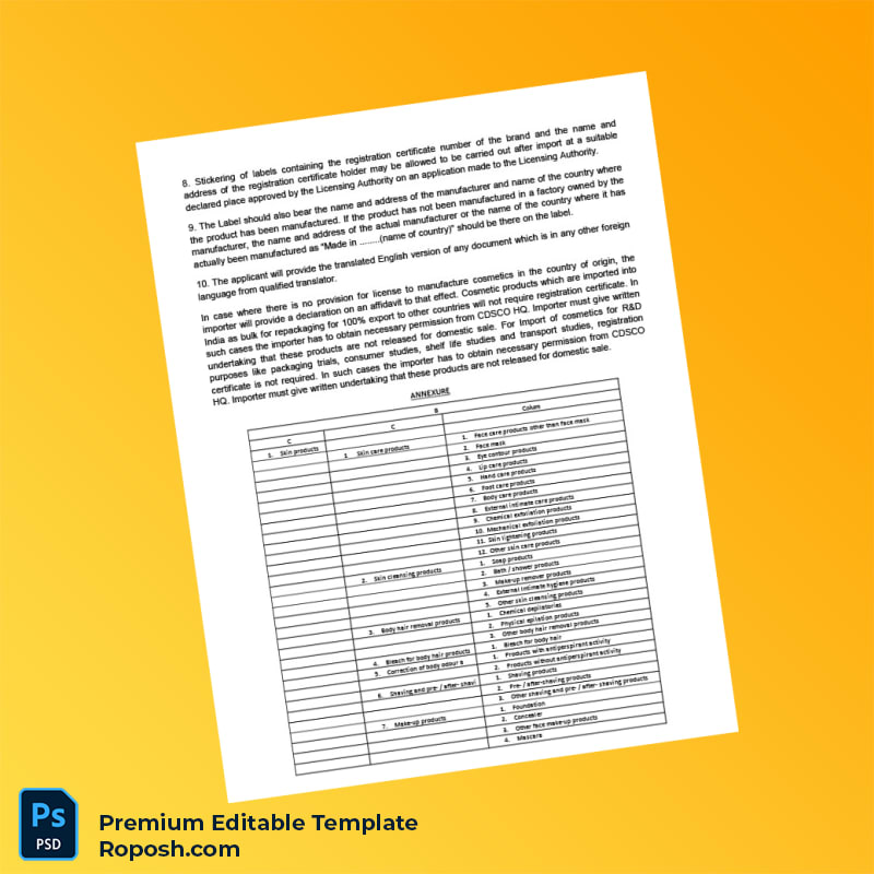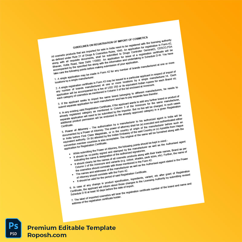 India Drugs Controller General of India Editable Cosmetic Import Registration Guide Editable Word & PDF Template 4 page