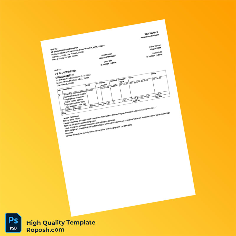 Manage your invoicing efficiently with the India Fancy Enterprises Tax Invoice Template, available in highly versatile Word and PDF formats. Designed for professionals who require a reliable and editable invoice template, this product ensures that creating, editing, and printing tax invoices is straightforward and fully customizable.
