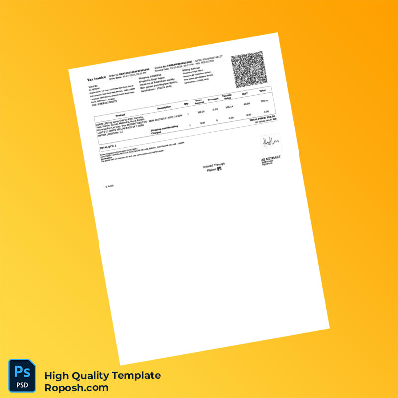 India Flipkart Internet Private Limited Tax Invoice Template – Editable and Professional