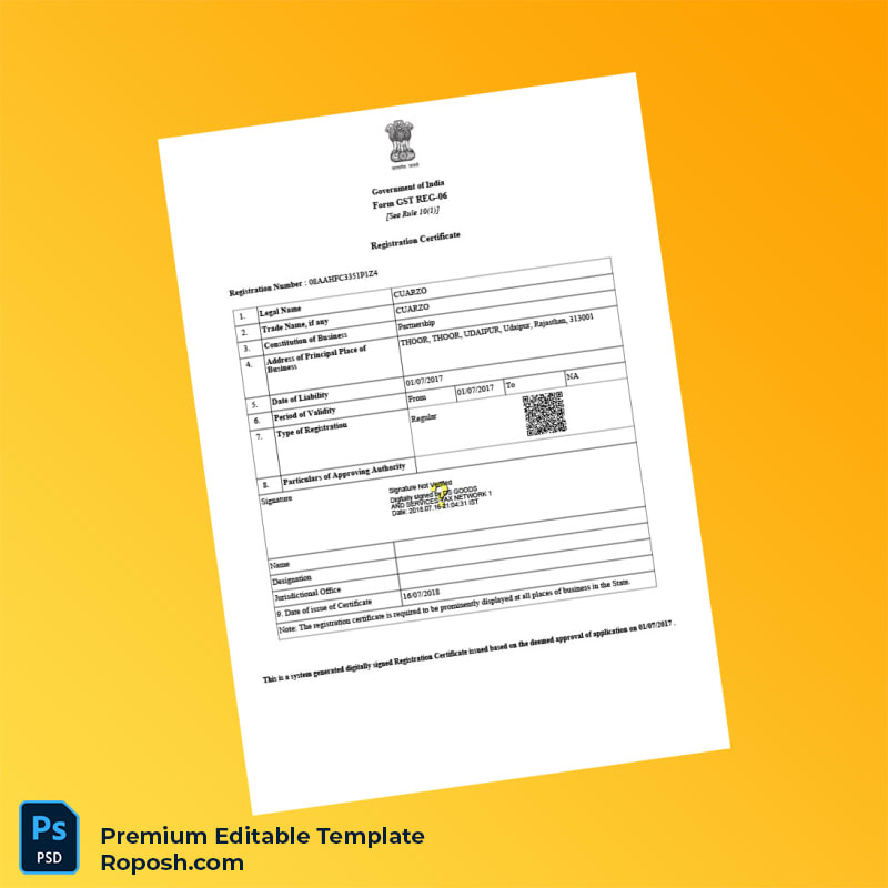 Streamline Your Business Documentation with an Editable GST Registration Certificate