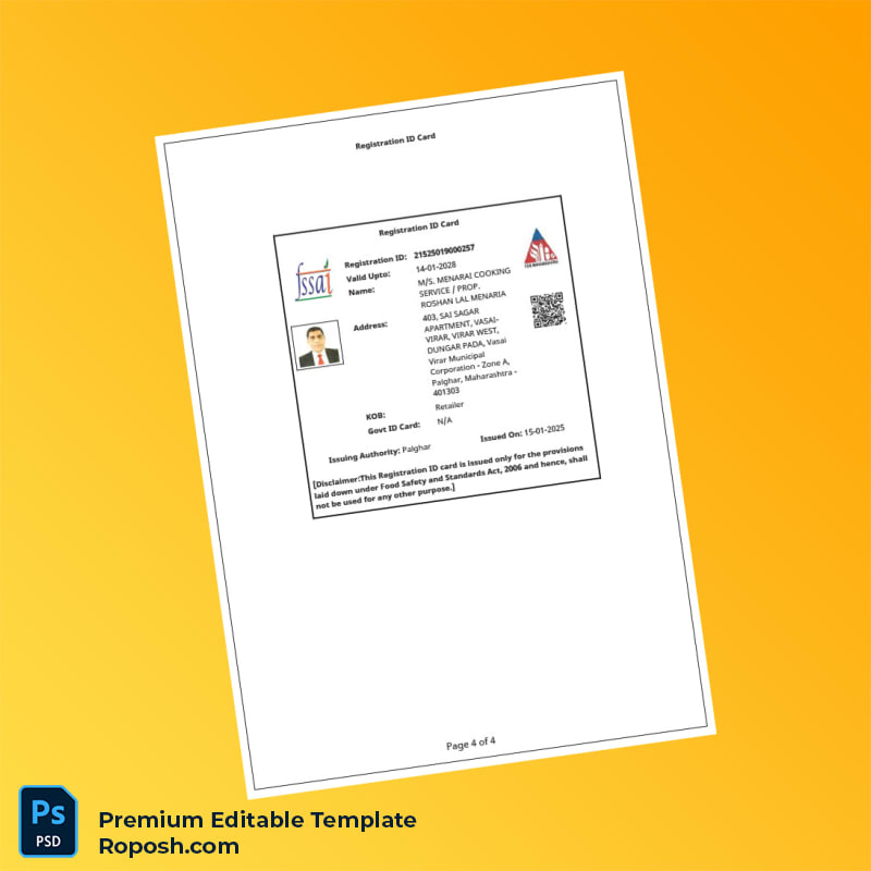 India Government of Maharashtra Editable Registration Certificate Editable Word & PDF Template 4 page