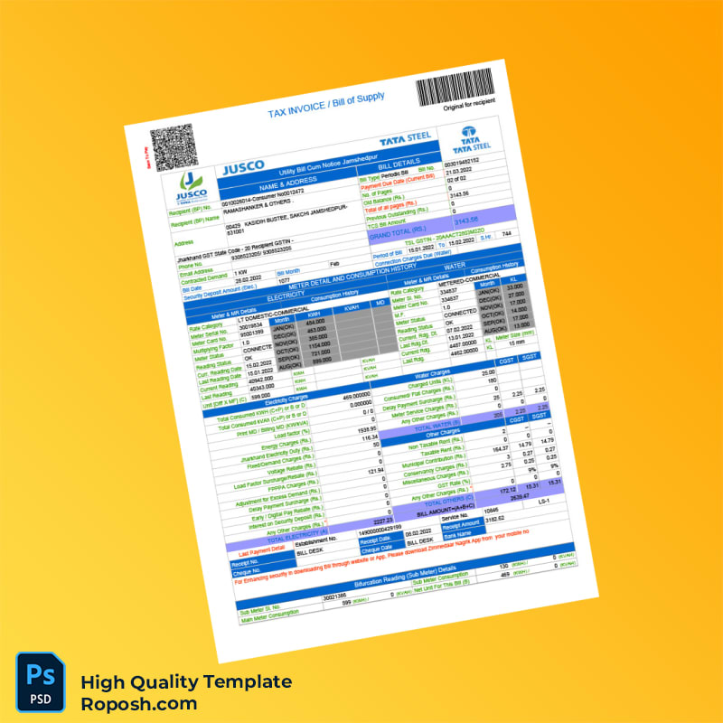 India JUSCO Editable Utility Bill Template – Professional Proof of Address