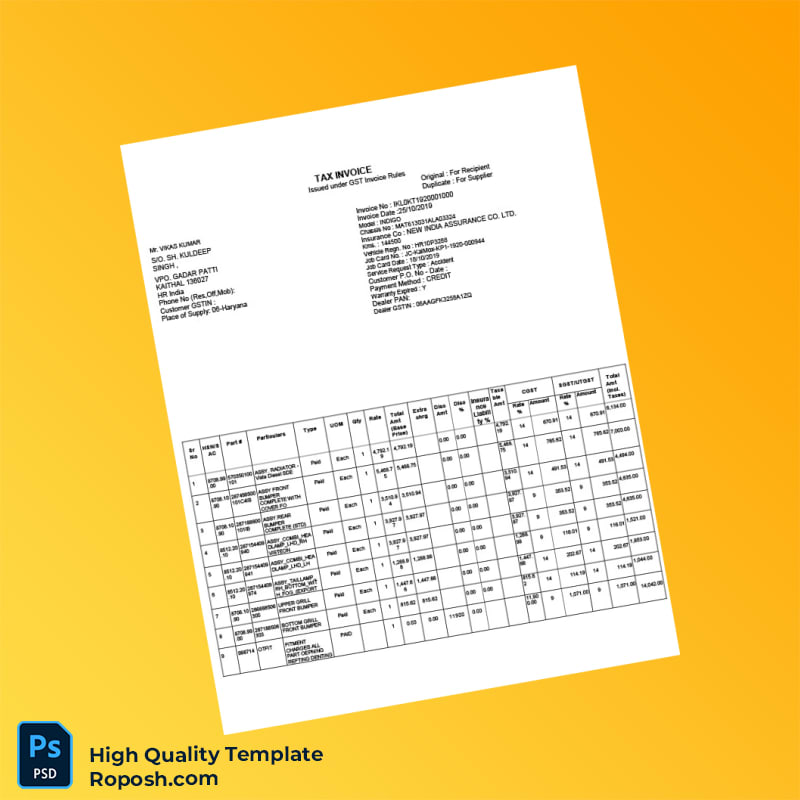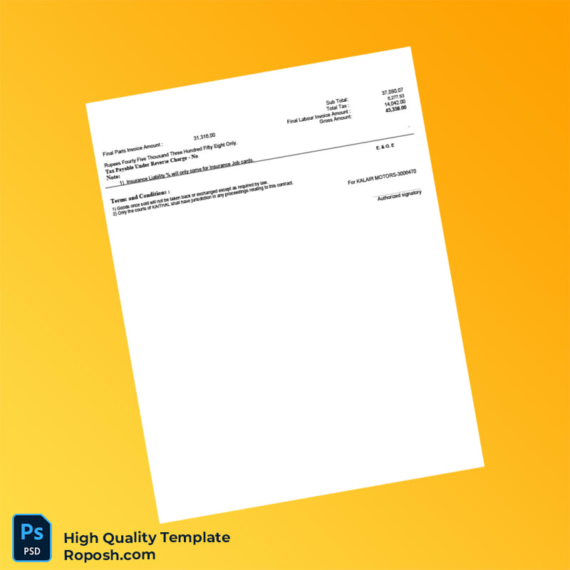 India Kalair Motors Tax Invoice Template: Editable and Professional