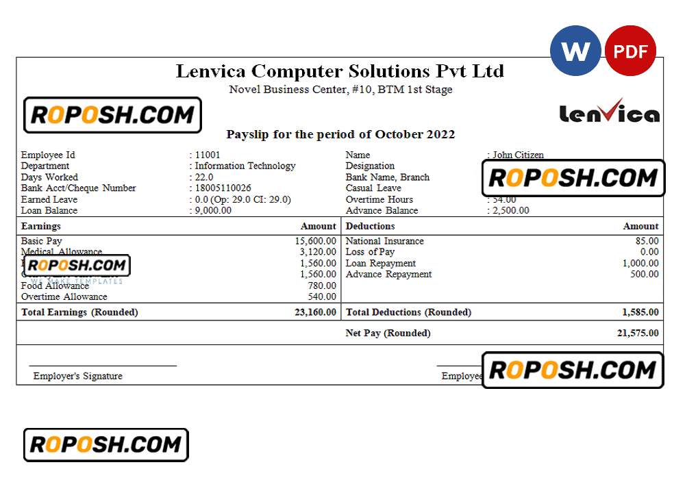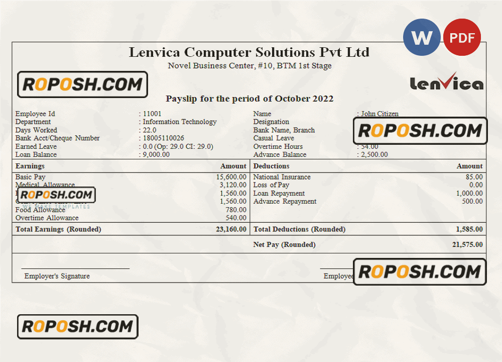 Grab now fully editable India Lenvica computer solutions company pay stub Template from our website roposh and put your own info to create a copy of India Lenvica computer solutions company pay stub   template Word and ready your own novelty documents. It’ll be so beneficial if your pay stub is expired, stolen or not available. We also have word invoice template, ID Card psd template, Bank Statement psd template, drivers license psd template, Utility bill psd template & pay stub.