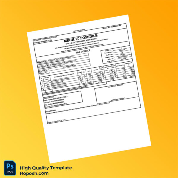 India Mech It Possible Tax Invoice Template: Streamline Your Billing Process with Editable Word and PDF Formats
