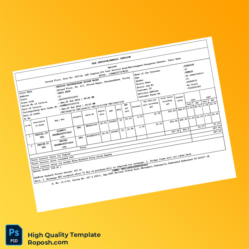 India MedPlus Tax Invoice Template in Word and PDF Formats