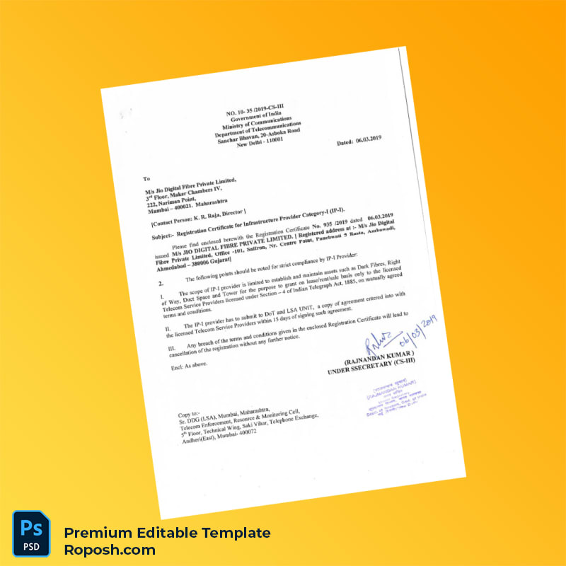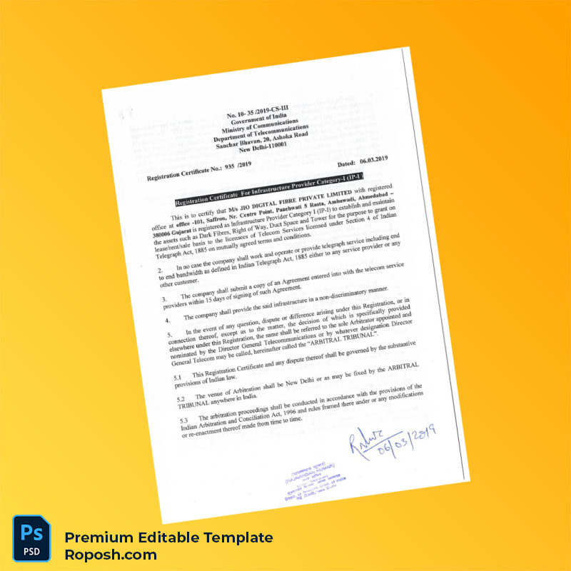 Streamline Your Business Registration with the India Ministry of Communications Editable Registration Certificate