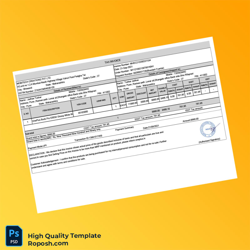 Don’t let outdated or inaccurate invoices slow down your business. Choose the India Mobitech Creations Pvt Ltd Invoice Template in Word and PDF formats today and experience seamless editing and professional results. Click the purchase button now to download your editable invoice template and simplify your invoicing process immediately.